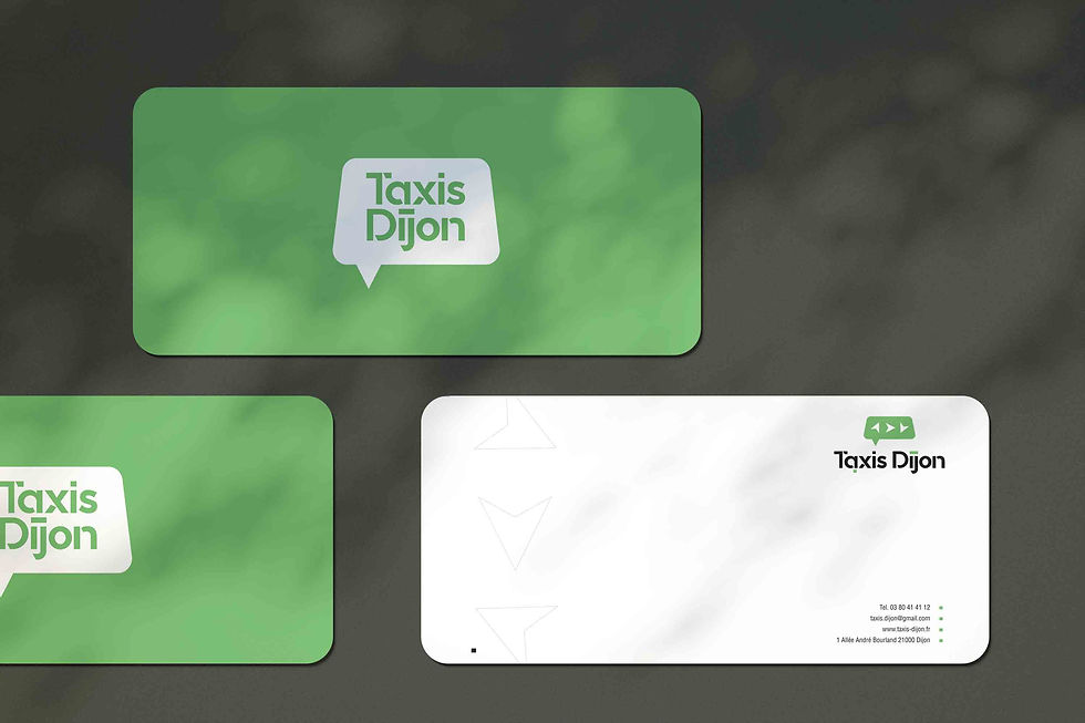 Refonte de logo et supports imprimés pour Taxis Dijon, leader du transport de personnes sur Dijon et premier groupement en Bourgogne Franche-Comté.